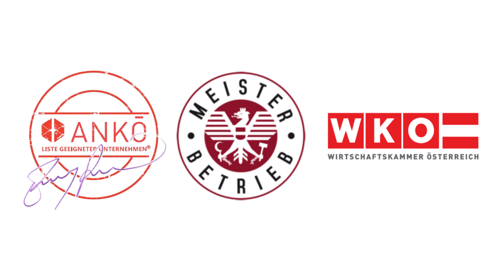 Wir sind ANKÖ-zertifiziert und als geprüfter Meisterbetrieb für Qualität und Verlässlichkeit ausgezeichnet.